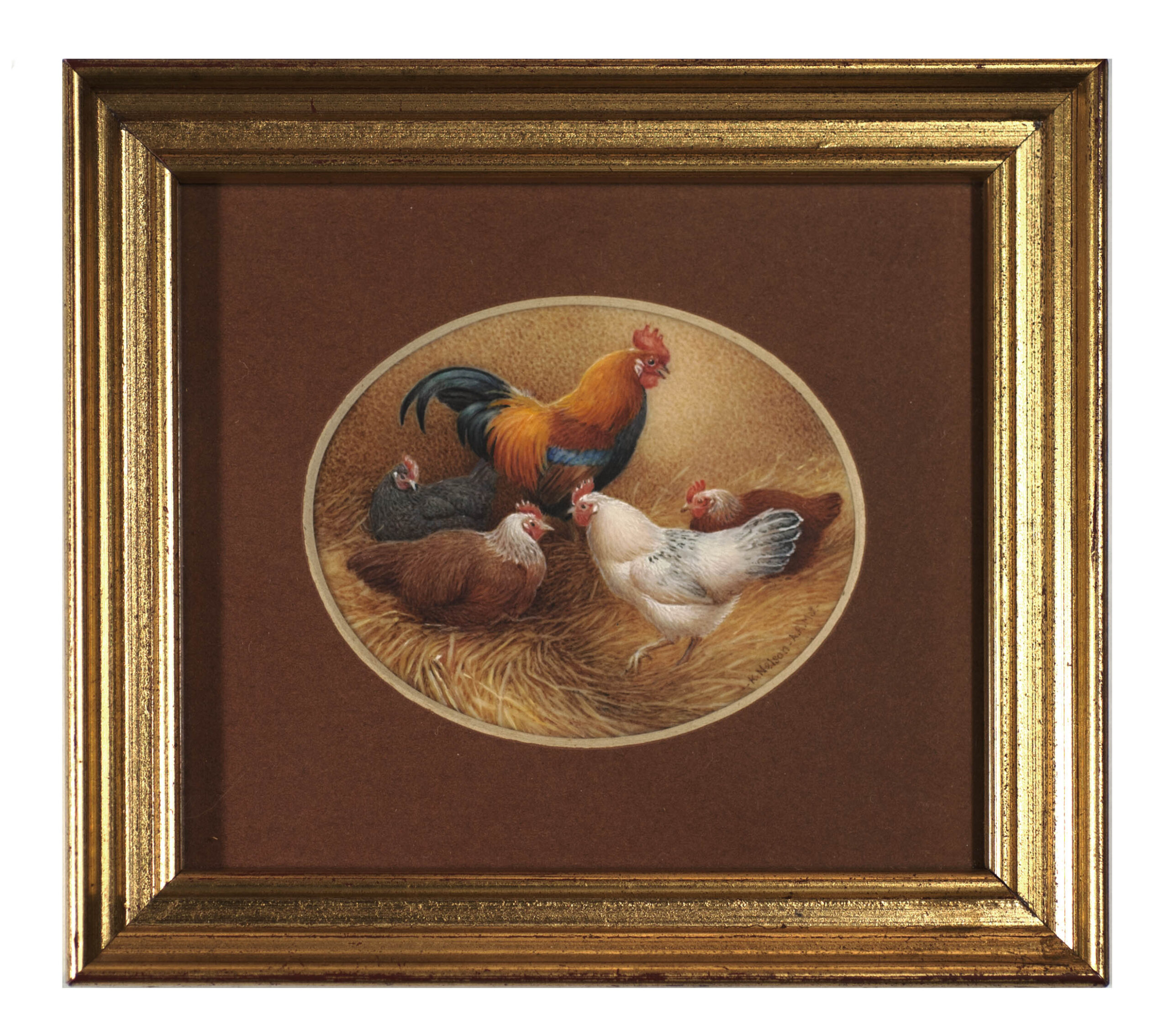 Bantam Cockerels and Hens by Kathleen Nelson 1984