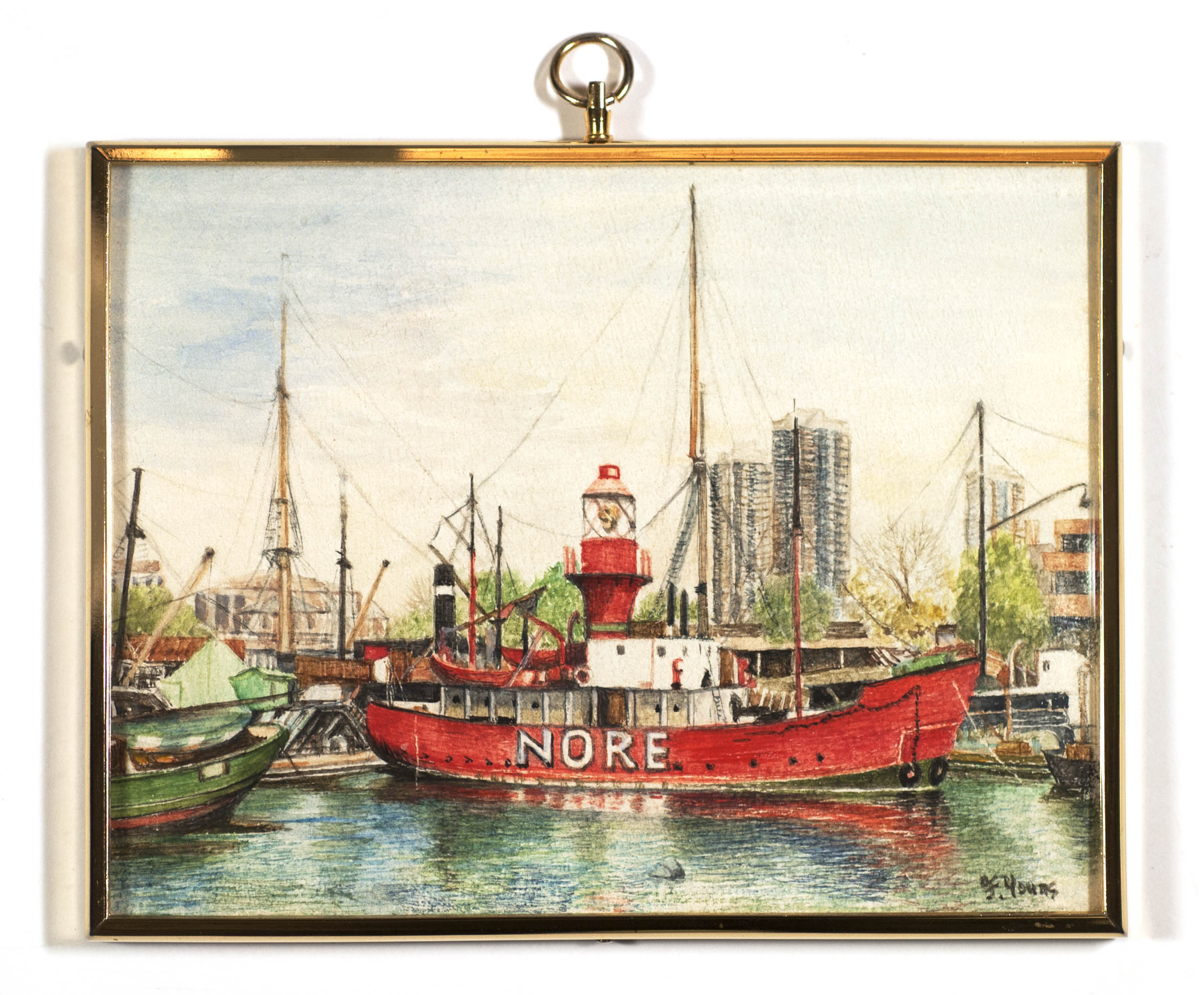 Nore Lightship St Katherines Dock by Florence Young 1980