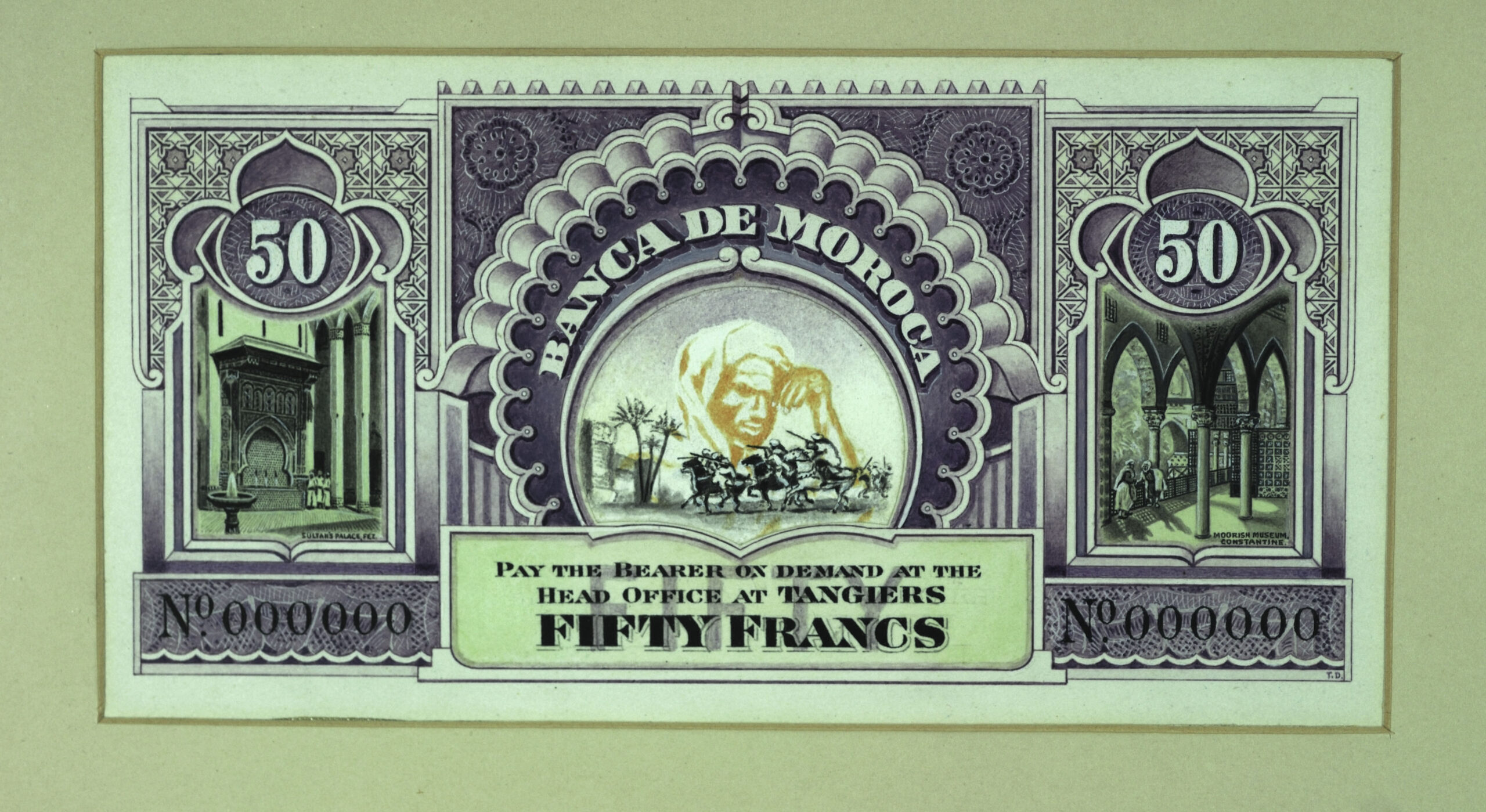 Specimen of Bank Note, Banque de Maroc by Thomas H Downs 1959