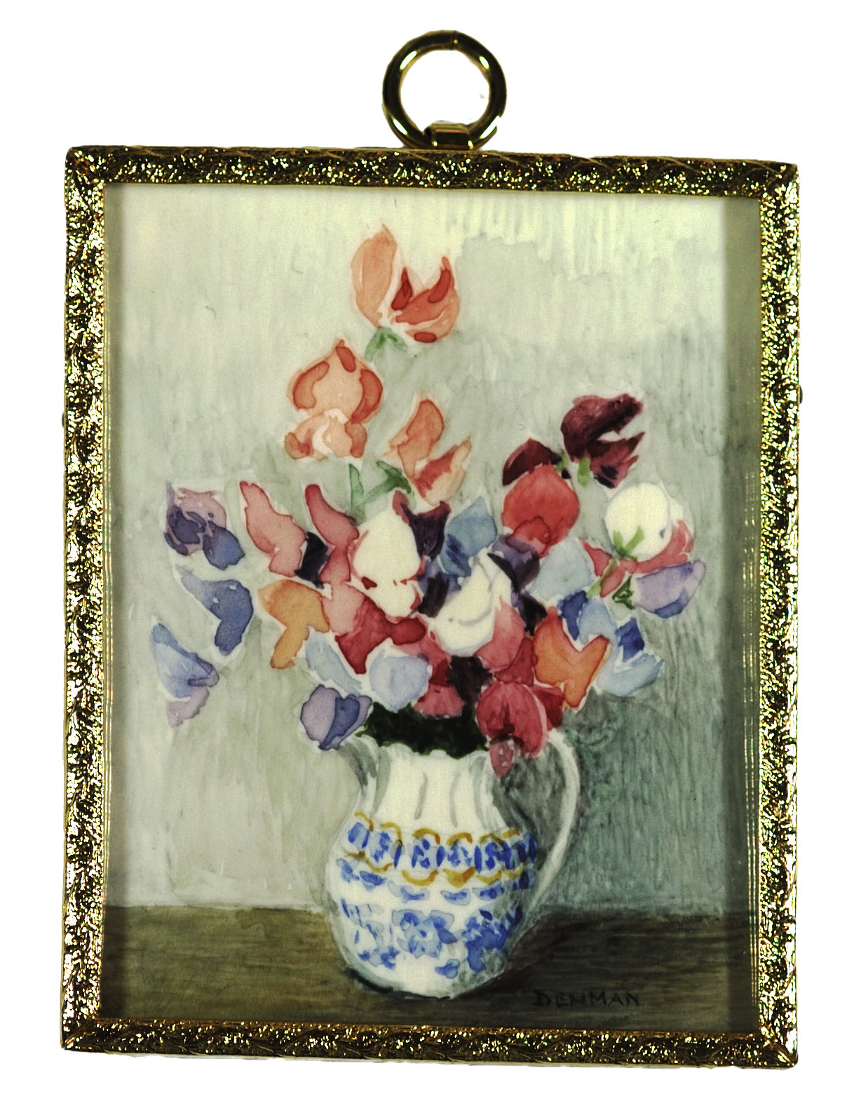 Sweet Peas with Blue and White Jug by Gladys Denman 1960